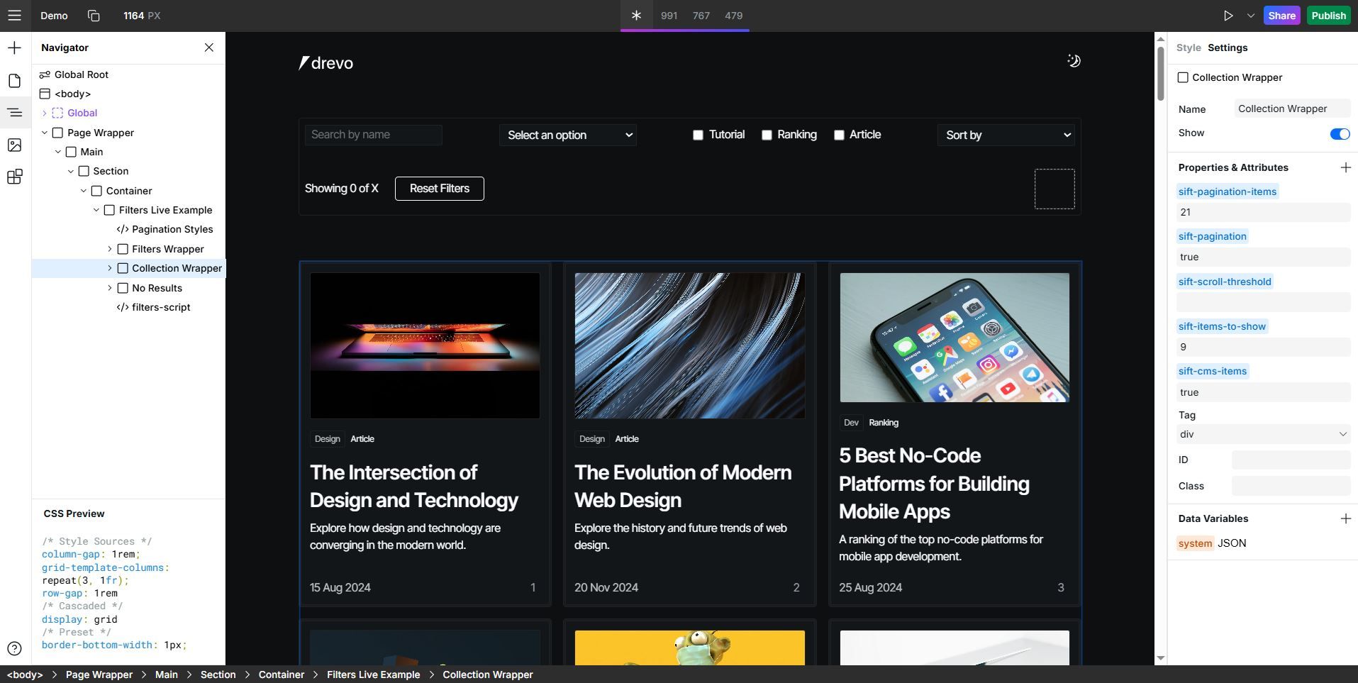 Explore a growing library of expertly crafted components and powerful plugins like Filters. Simply find what you need and copy it directly into your Webstudio project.